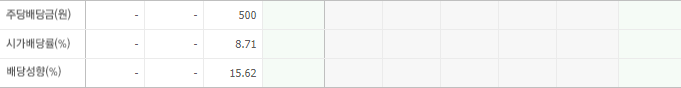 2018, 2019년에는 배당금 지급이 없었고 2020년에는 주당 500원, 시가배당률 8.7%에 달하는 높은 배당금을 지급했습니다. 네이버 배당주 순위에서도 최상위에 올라 있습니다.