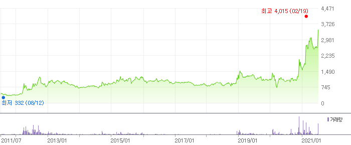 대영포장 주가 전망 먼저 보겠습니다. 아래는 지난 10년간의 대영포장 주가 흐름을 보여주는 그래프입니다.