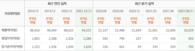 매출과 영업이익이 정체되어 있습니다. 그런데 순이익은 상당한 속도로 늘어나고 있습니다. 원가개선을 통해 수익성을 개선한 것으로 보입니다.